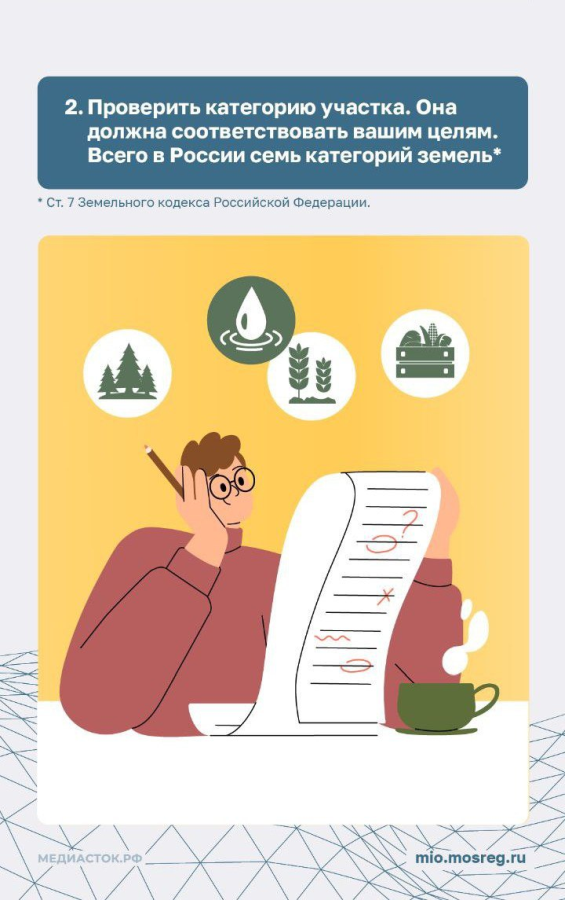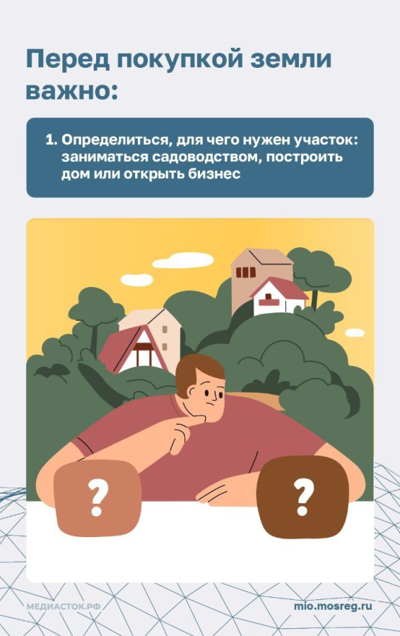 Вы планируете приобрести участок для бизнеса или строительства дома? Это важный шаг, который требует четкого понимания целей, законодательства, тщательной подготовки и внимания ко многим аспектам. И прежде всего при выборе участка нужно обратить внимание на его характеристики, в том числе целевое использование земли! Какие факторы следует учитывать при выборе участка – рассказываем в инфокарточках.